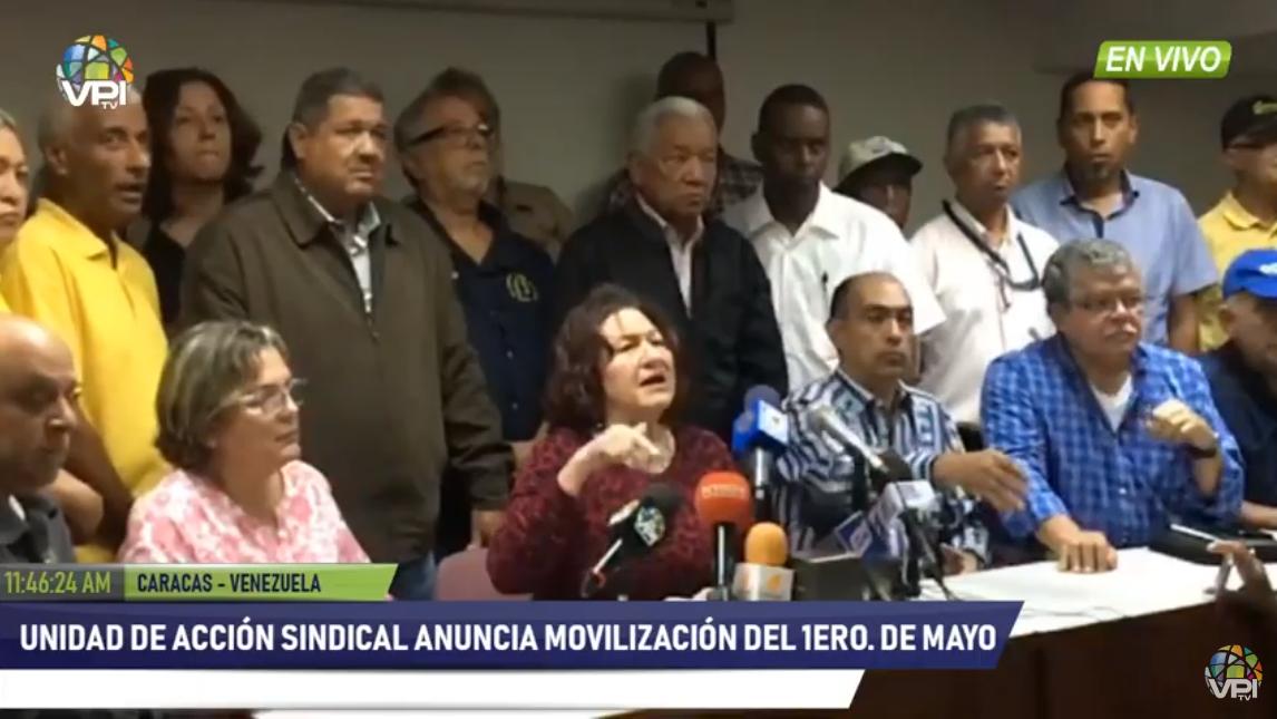 En rueda de prensa realizada hoy en Caracas, la Unidad de Acción Gremial y Sindical dio una rueda de prensa para convocar a la movilización del 1° de mayo, Día del Trabajador.